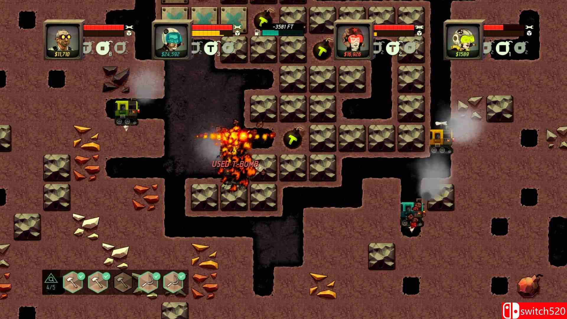 PC游戏《超级母矿》是动作冒险类(ACT)游戏,设定在冷战背景的火星上,玩家控制采矿飞船深入地下,采集资源、升级装备,解锁多重结局和谜团。支持1-4人本地合作。switch520游戏