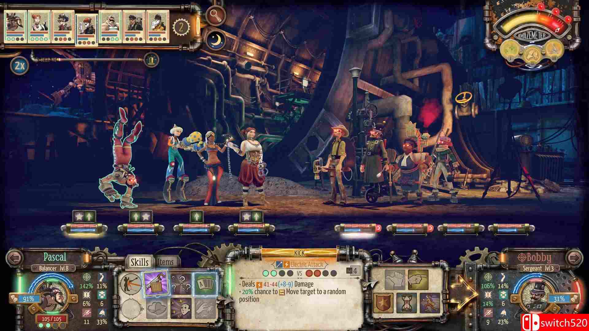 PC游戏《电子马戏团》是角色扮演类(RPG)游戏,《电子马戏团(Circus Electrique)》是一款故事驱动的RPG,部分是战术,部分是马戏团管理,而且完全令人着迷–所有这些都带有蒸汽朋克的色彩。当每天的伦敦人神秘地变成邪恶的杀手时,只有马戏团的天才表演者拥有拯救城市的必要技能。switch520游戏
